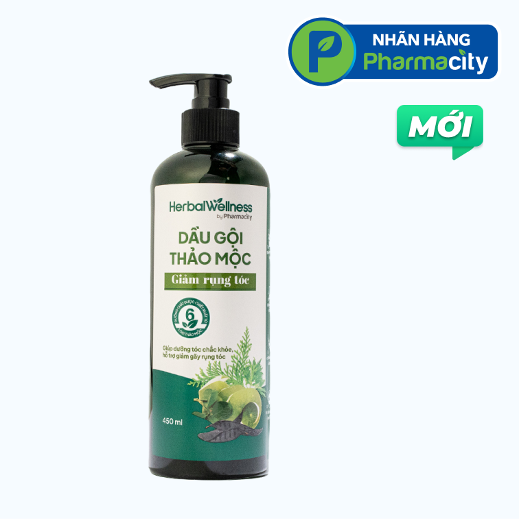 Dầu gội thảo mộc giảm rụng tóc Herbal Wellness by Pharmacity chai 450mlSẢN PHẨM