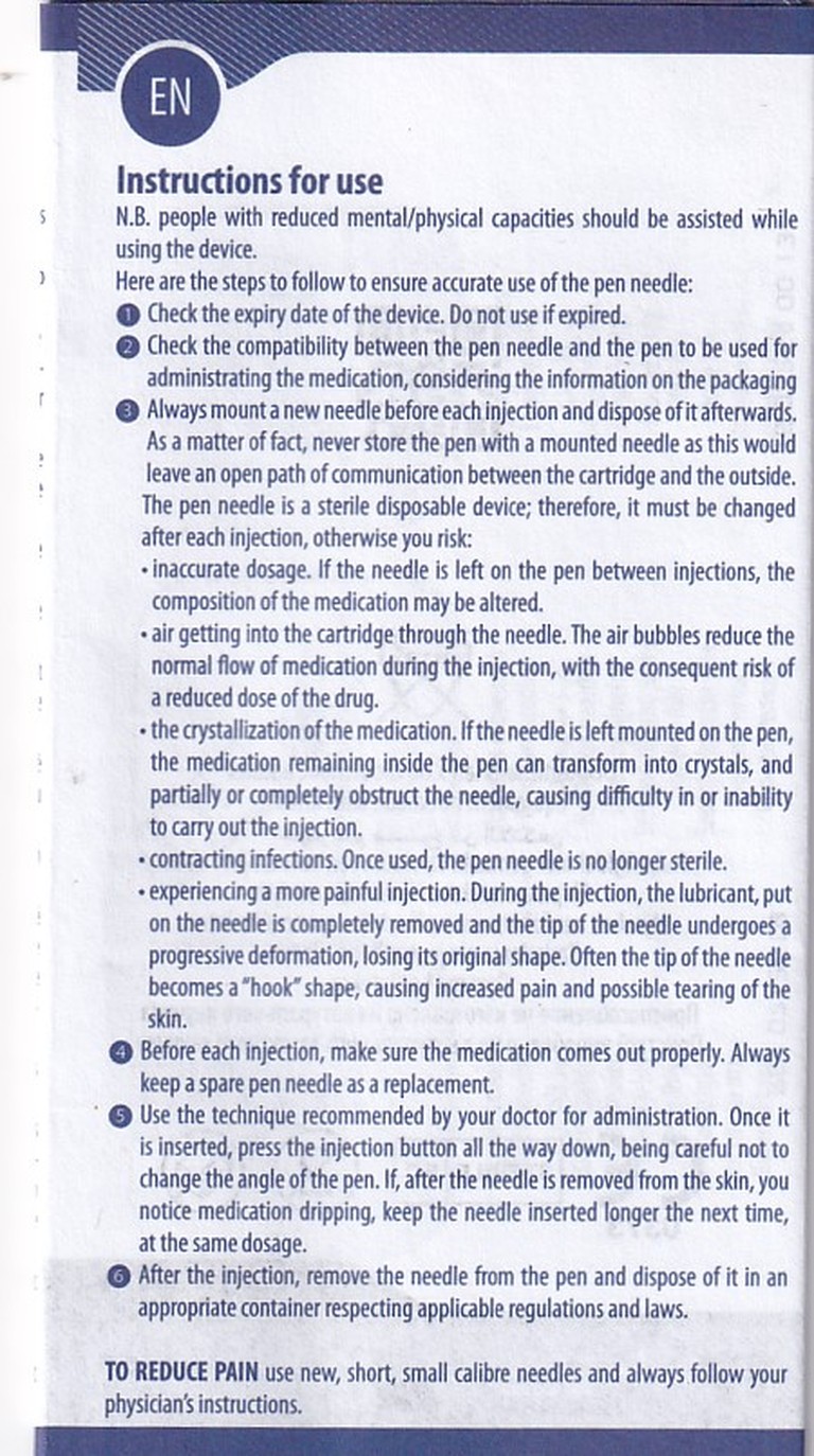Kim bút là thiết bị vô trùng dùng một lần; do đó, nó phải được thay đổi sau mỗi lần tiêm, nếu không bạn có nguy cơ: