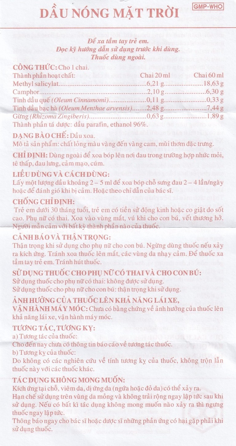 Khi sử dụng thuốc Dầu nóng mặt trời, bạn có thể gặp các tác dụng không mong muốn (ADR).
