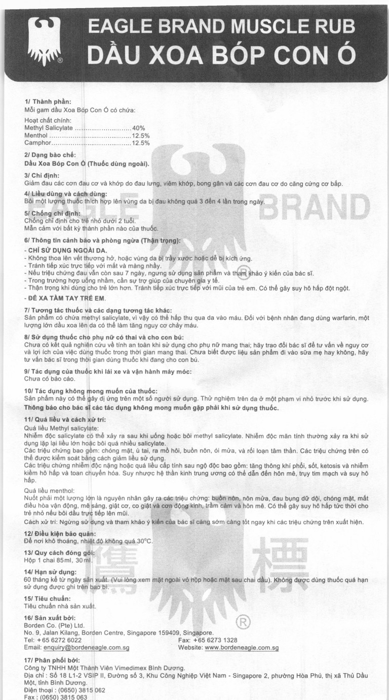 Dầu xoa bóp Con Ó Eagle Brand Muscle Rub giảm đau lưng, viêm khớp, bong gân (85ml)SẢN PHẨM