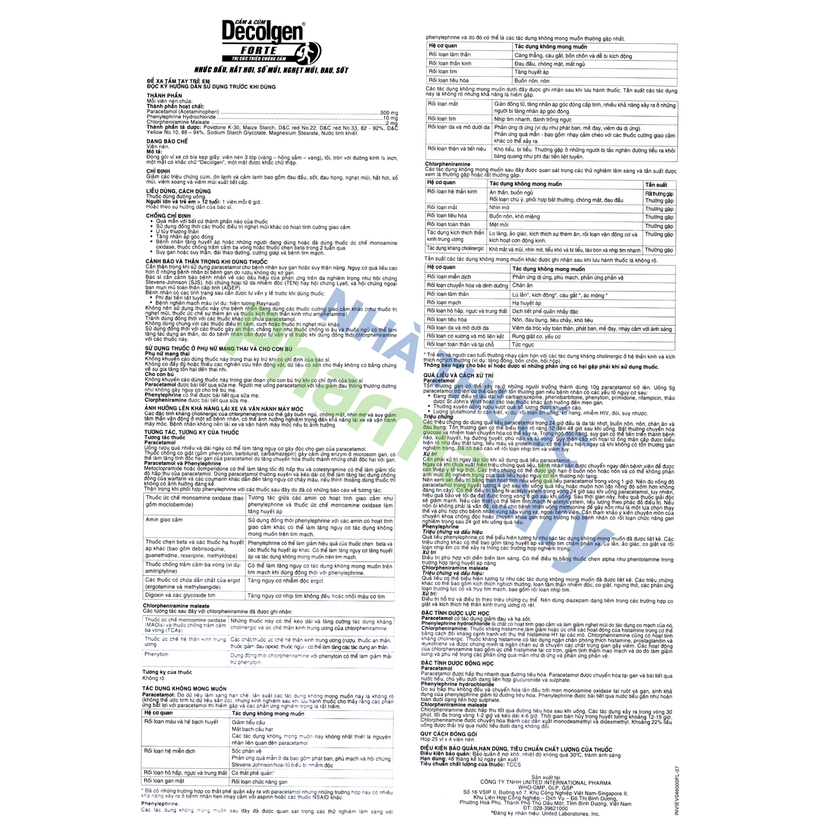 Decolgen Forte (25 vỉ x 4 viên) - Giảm nhanh các triệu chứng cảm cúmDecolgen Forte (25 vỉ x 4 viên) – Giảm nhanh các triệu chứng cảm cúm