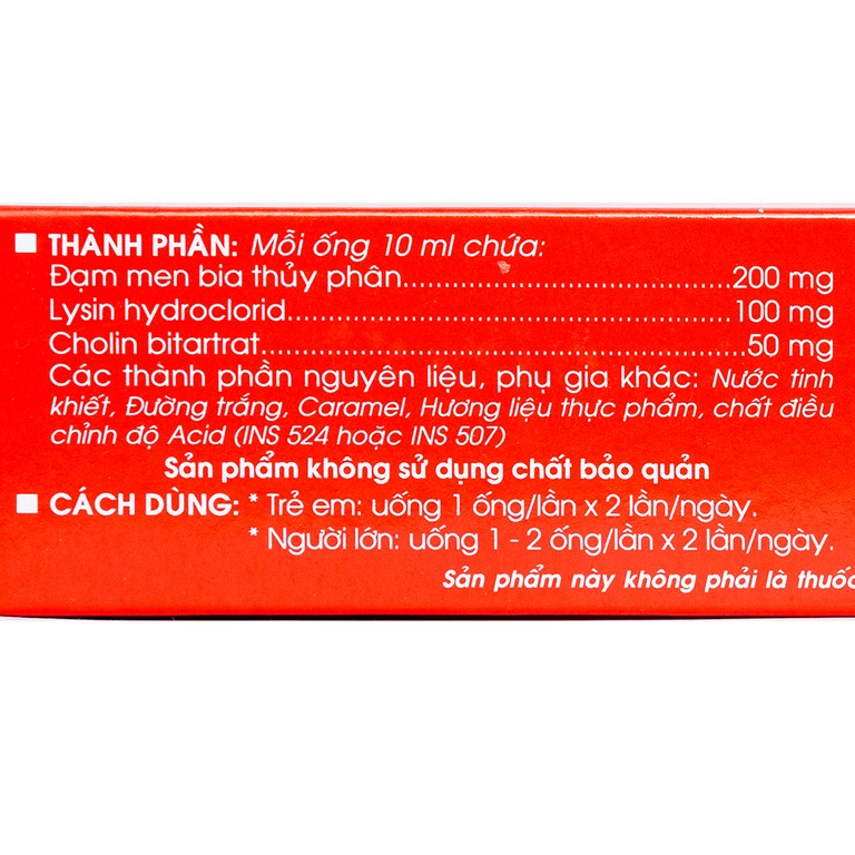 • Giúp ăn ngon miệng: Hàm lượng lysine thiết yếu giúp cải thiện rõ rệt tình trạng biếng ăn ở trẻ, hỗ trợ kích thích vị giác và tăng khả năng hấp thu dinh dưỡng từ bữa ăn, giúp trẻ nhanh chóng lấy lại hứng thú với thức ăn.