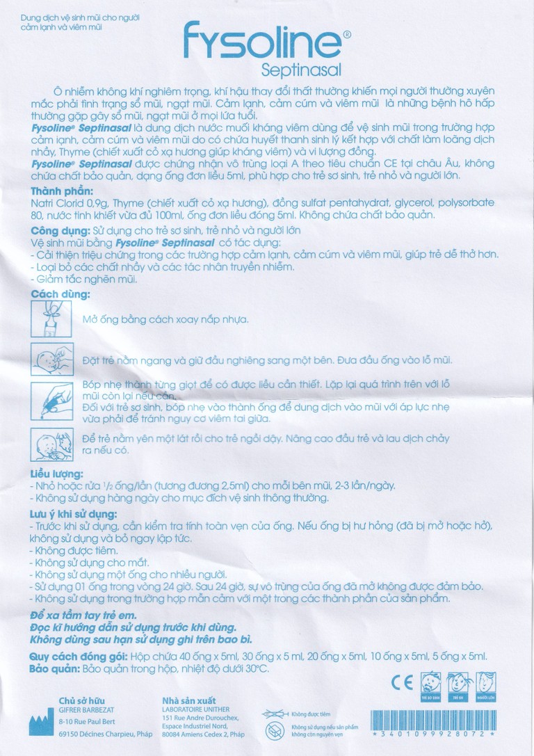 Sử dụng cho trẻ sơ sinh, trẻ nhỏ và người lớn. Vệ sinh mũi bằng Fysoline® Septinasal có tác dụng: