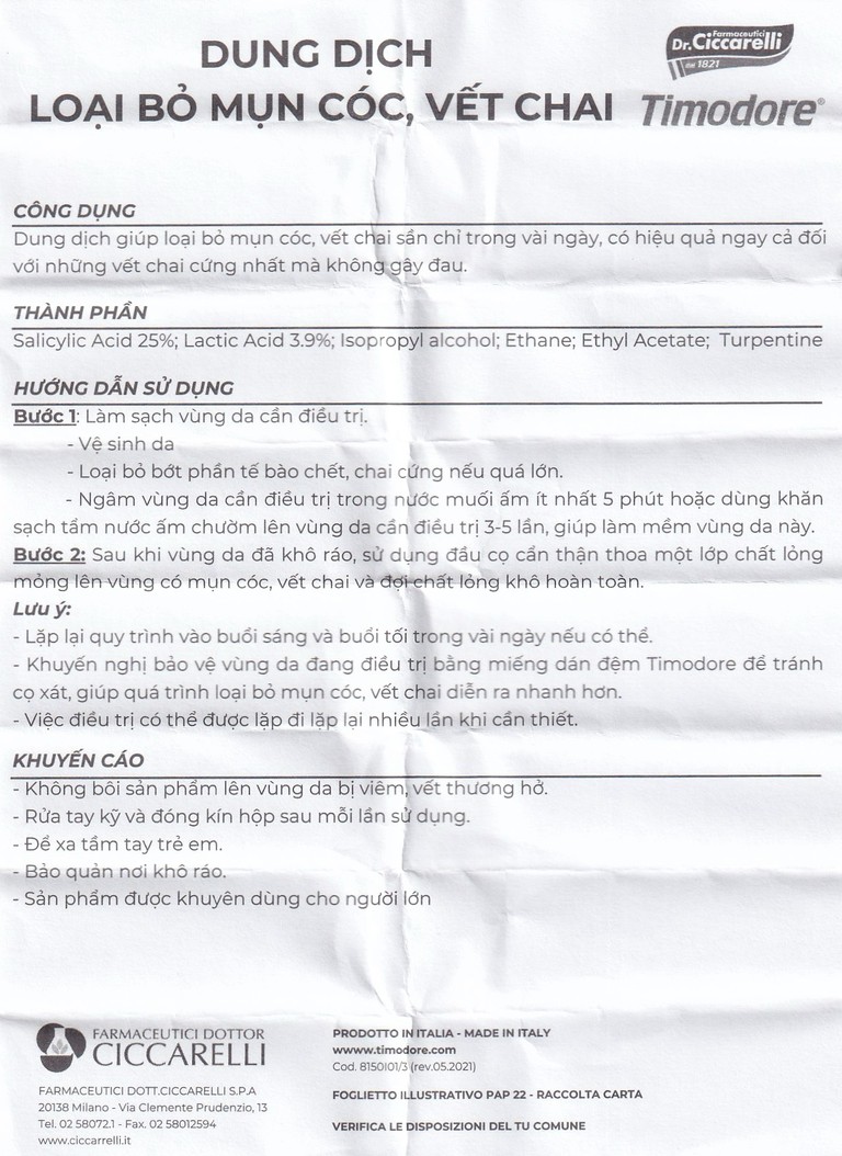 Cách dùng Dung dịch Timodore Liquido Callifugo Ciccarelli