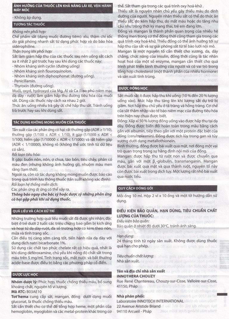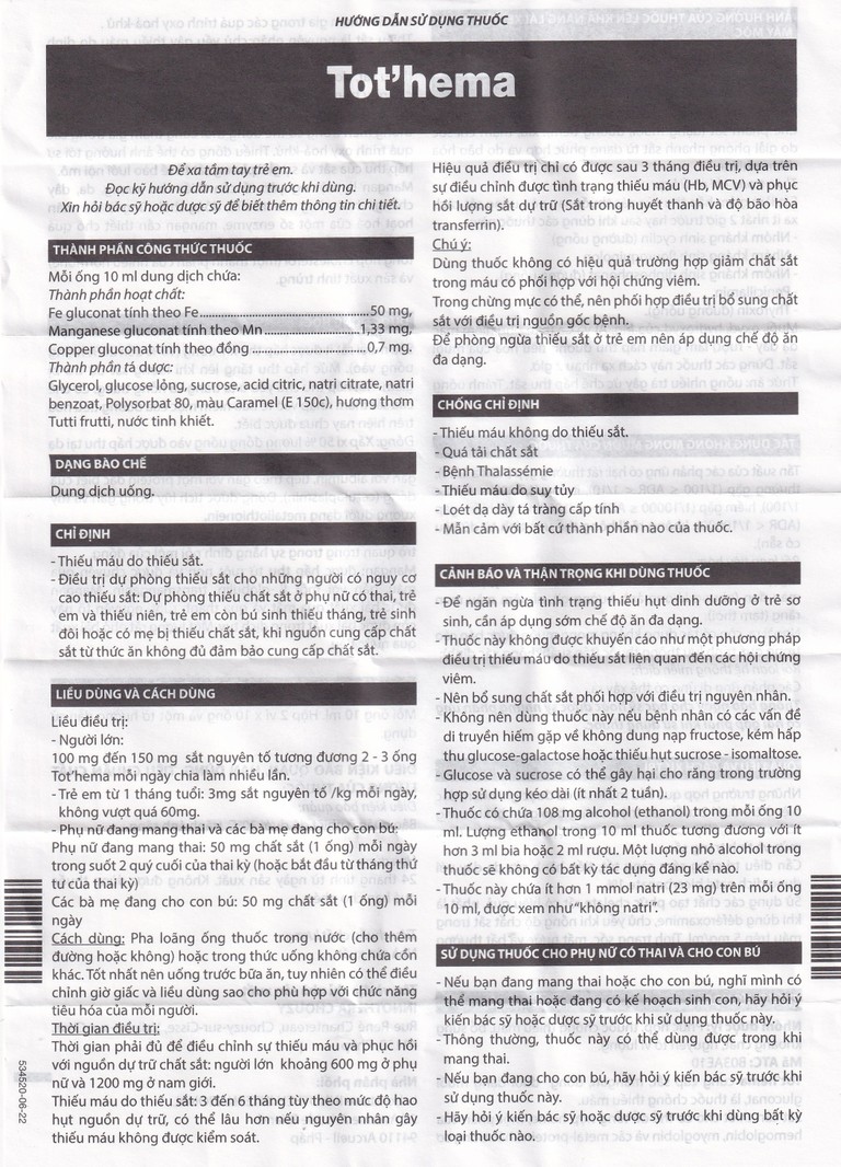 Tot’hema cung cấp sắt, mangan, đồng dưới dạng muối gluconat, là thuốc chống thiếu máu.