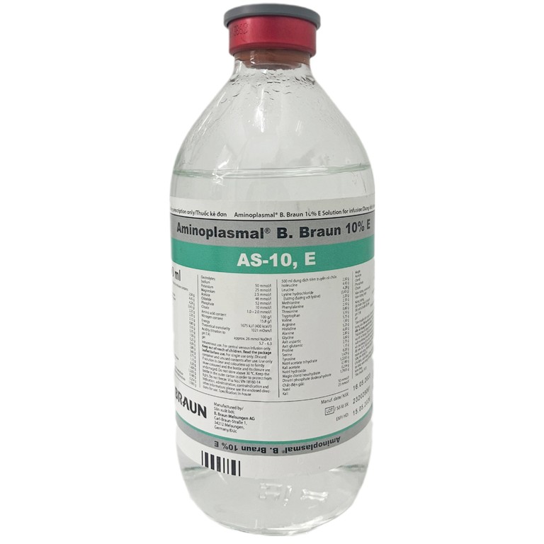 Aminoplasmal B. Braun 10% E chỉ là một thành phần của dinh dưỡng qua đường tĩnh mạch. Trong dinh dưỡng qua đường tĩnh mạch, cung cấp amino acid phải được kết hợp với cung cấp các nguồn năng lượng, acid béo thiết yếu, vitamin và các nguyên tố vi lượng.
