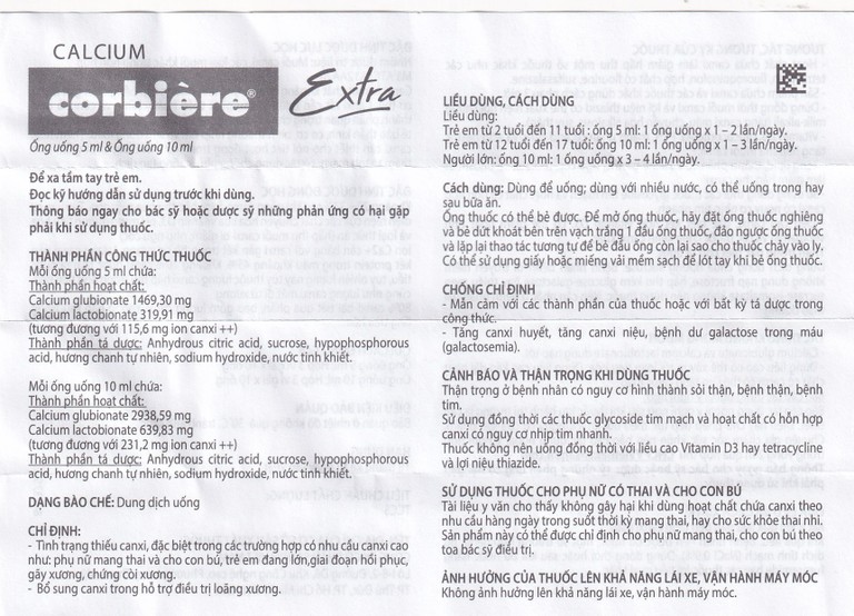 Cách dùng Dung dịch uống Calcium Corbière Extra