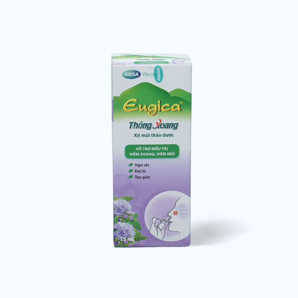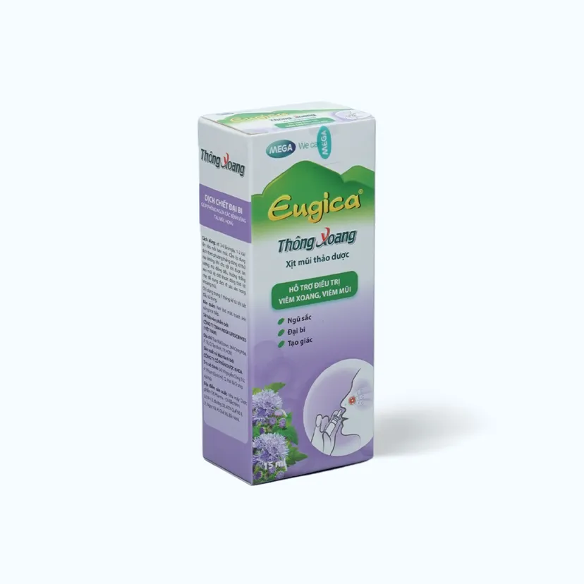 Thông Xoang Eugica với thành phần thảo dược thiên nhiên, hỗ trợ làm giảm triệu chứng viêm xoang, viêm mũi, viêm đường hô hấp trên, giảm nghẹt mũi.