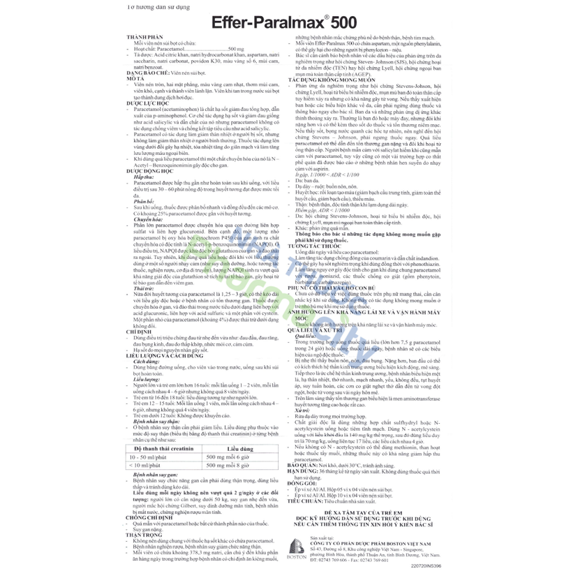 Công dụng Viên sủi bọt Effer- Paralmax 500mg