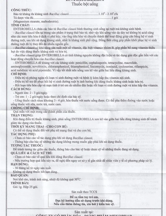 Cách dùng Thuốc bột Enterobella