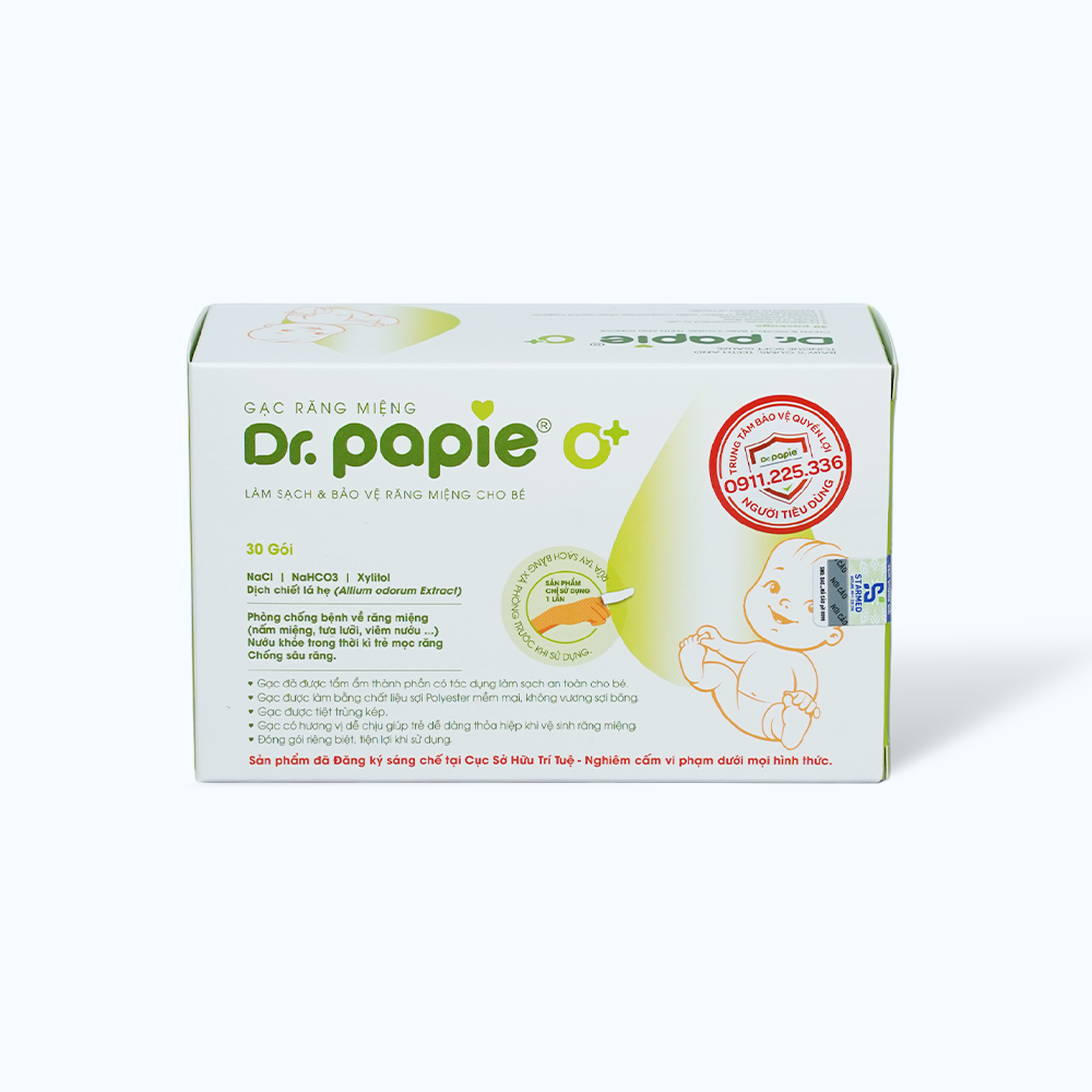 Gạc răng miệng Dr. Papie là sản phẩm chăm sóc răng miệng, được thiết kế để hỗ trợ làm sạch và bảo vệ răng và nướu. Sản phẩm này thường được dùng để loại bỏ mảng bám, thức ăn thừa và vi khuẩn trong khoang miệng, giúp ngăn ngừa sâu răng và bệnh nướu. Gạc răng miệng Dr. Papie có thể chứa các thành phần như muối biển, các tinh chất thảo mộc hoặc các chất kháng khuẩn, giúp làm sạch sâu và tăng cường sức khỏe răng miệng. Sản phẩm này thích hợp cho mọi lứa tuổi và là một phần quan trọng trong việc duy trì vệ sinh răng miệng hàng ngày.