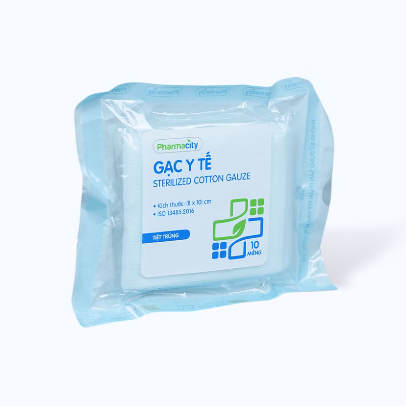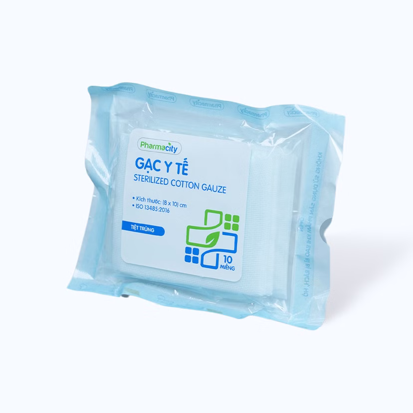 Gạc tiệt trùng Pharmacity 8 x 10cm được sản xuất trên dây chuyền hiện đại, đáp ứng tiêu chuẩn ISO 9001:2015. Với thành phần 100% cotton được tiệt trùng, sản phẩm được sử dụng trong nhiều trường hợp khác nhau như làm sạch, chăm sóc vết thương hiệu quả