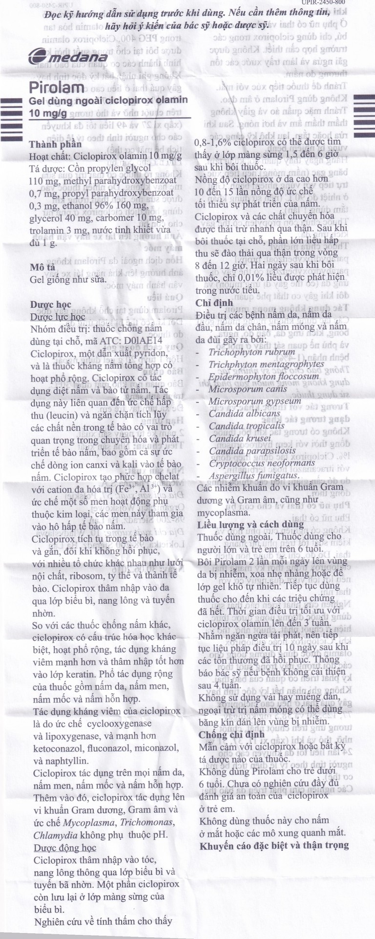 Gel bôi da Pirolam Medana điều trị các bệnh nấm da, nấm da đầu, nấm da chân (20g)SẢN PHẨM