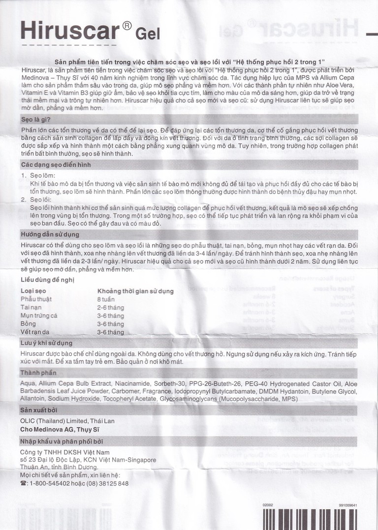 Hiruscar Gel là giải pháp được nhiều người tin chọn để chăm sóc và cải thiện tình trạng sẹo lồi do phẫu thuật, tai nạn, bỏng, mụn nhọt hay vết rạn da. Sản phẩm hữu hiệu cho cả sẹo mới và sẹo cũ hình thành dưới 2 năm.