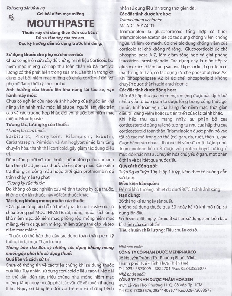 Chỉ dùng thuốc để bôi niêm mạc miệng, không được ăn hay uống sau khi bôi thuốc.