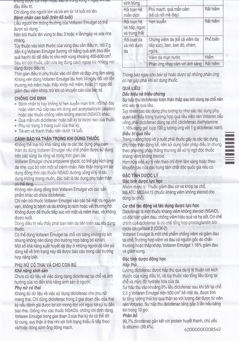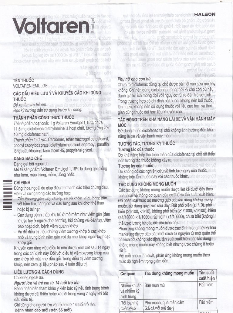 Liều người lớn thông thường của Voltaren Emulgel có thể được sử dụng.