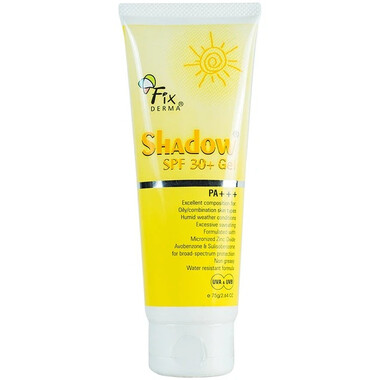 - Để đảm bảo bảo vệ tối ưu trước tia UVA và UVB, Fixderma Shadow kết hợp giữa các thành phần ngăn chặn vật lý và chất hấp thụ hóa học, tạo ra công thức chống nắng hoàn hảo. Đặc biệt, nếu bạn có làn da dễ tiết dầu, dạng gel nhẹ nhàng sẽ giúp kiểm soát độ bóng nhờn và giảm nguy cơ hình thành mụn. Hơn nữa, dạng gel cũng dễ dàng tương thích với mọi loại da.