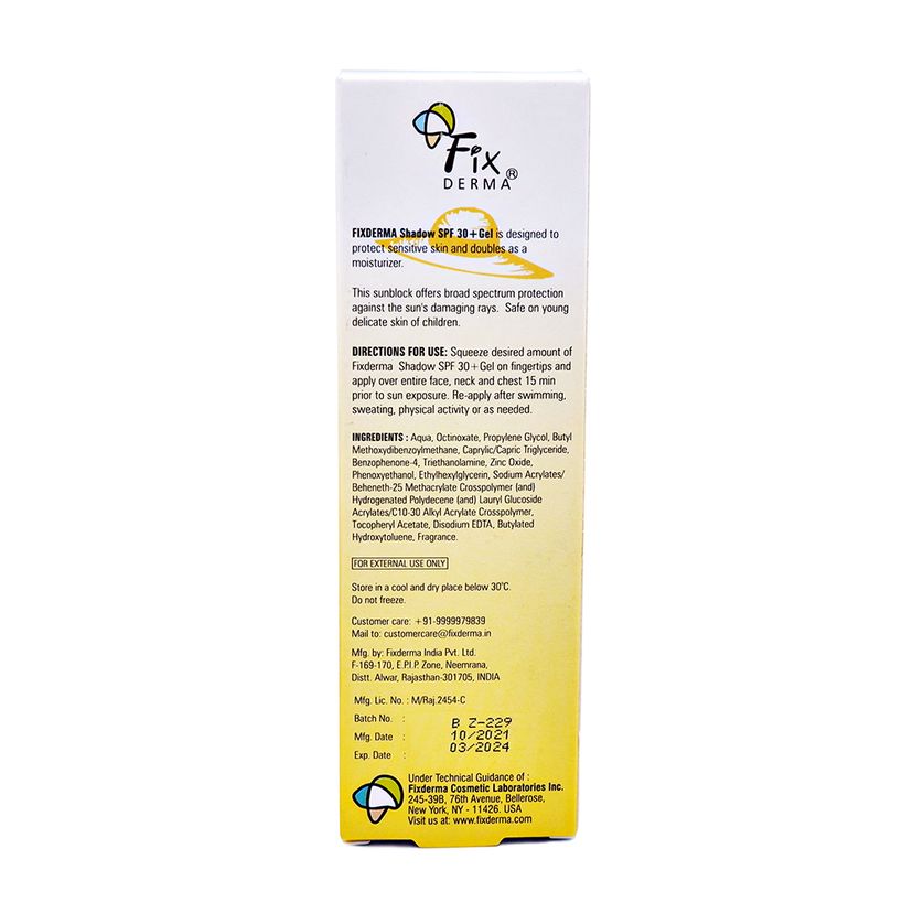 Gel chống nắng FIXDERMA SHADOW SPF 30+ giúp dưỡng ẩm và bảo vệ da (Tuýp 75g)Gel chống nắng FIXDERMA SHADOW SPF 30+ giúp dưỡng ẩm và bảo vệ da (Tuýp 75g)