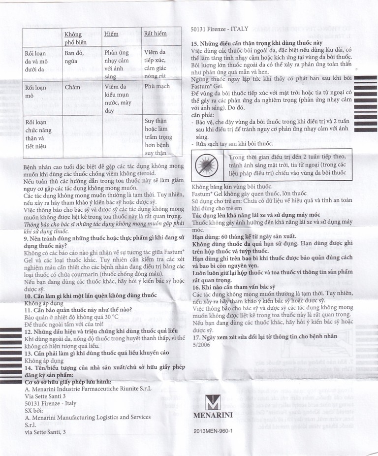 Gel Fastum Menarini giảm đau và kháng viêm cơ xương khớp (30g)SẢN PHẨM