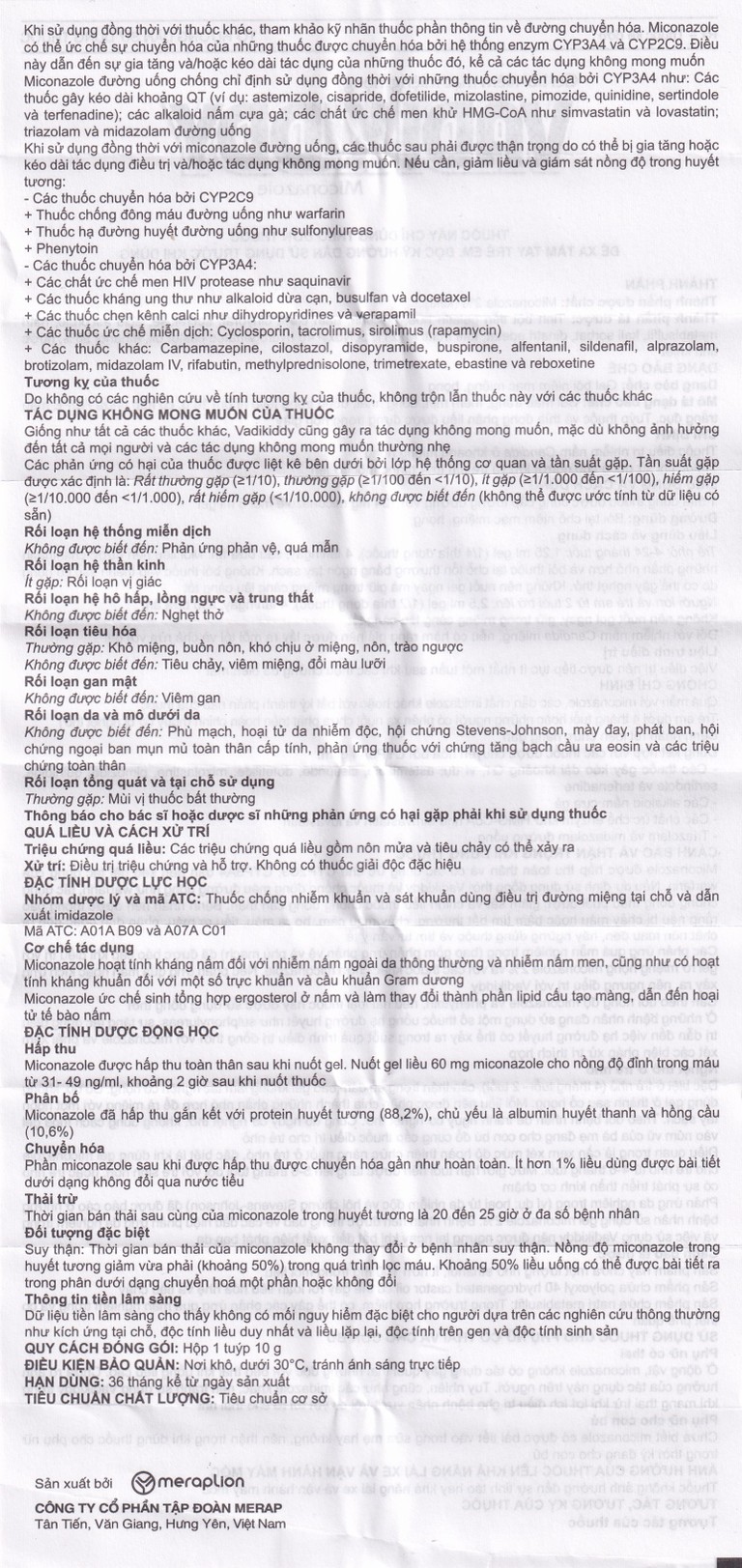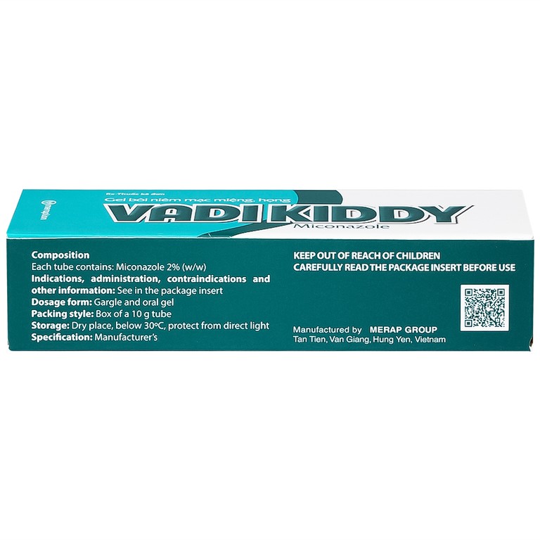 Gel niêm mạc miệng họng Vadikddy 10g Merap Gel điều trị nấm candida