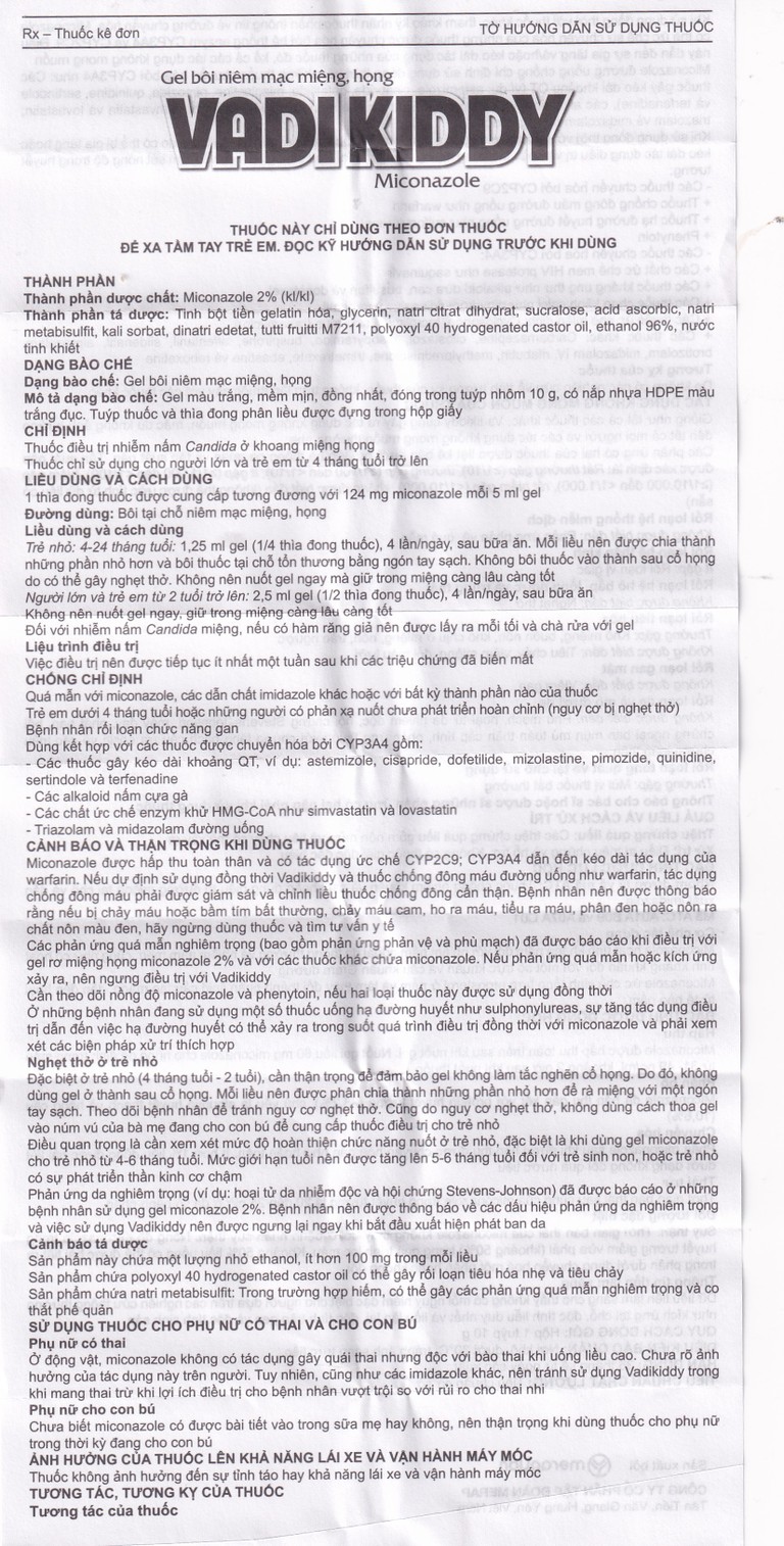 Phản ứng da nghiêm trọng (ví dụ: Hoại tử da nhiễm độc và hội chứng Stevens-Johnson) đã được báo cáo ở những bệnh nhân sử dụng gel miconazole 2%. Bệnh nhân nên được thông báo về các dấu hiệu phản ứng da nghiêm trọng và việc sử dụng Vadikiddy nên được ngưng lại ngay khi bắt đầu xuất hiện phát ban da.