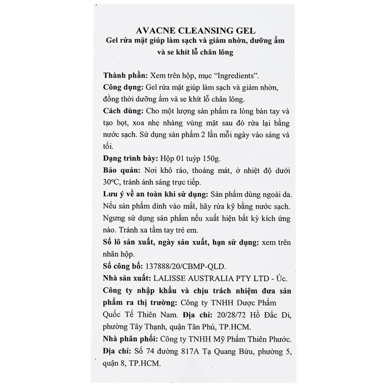 Công dụng của Gel rửa mặt Avacne Cleansing Gel AUVI