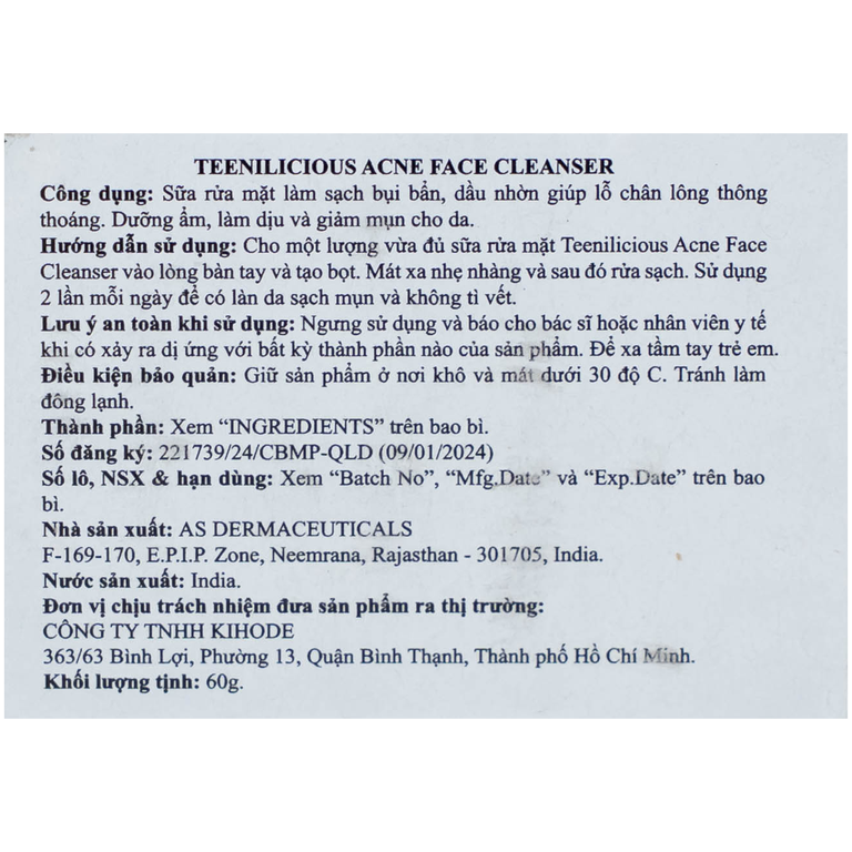 Gel rửa mặt giúp làm sạch mụn, ngăn ngừa mụn Teenilicious(60g)SẢN PHẨM