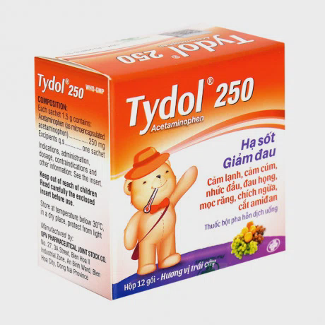 Gói bột Tydol 250mg giảm đau từ nhẹ đến vừa và hạ sốt (hộp 12 gói)Gói bột Tydol 250mg giảm đau từ nhẹ đến vừa và hạ sốt (hộp 12 gói)
