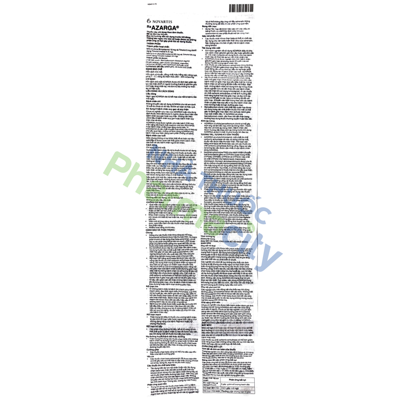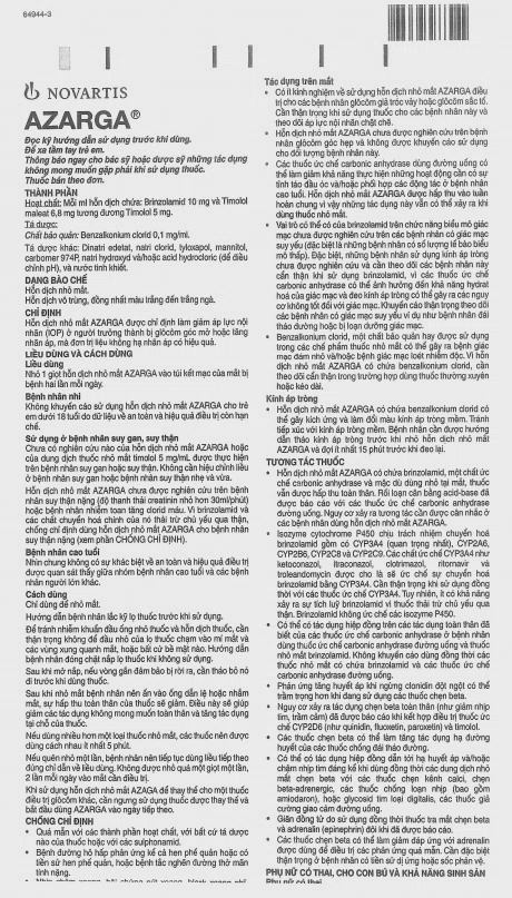 - Hỗn dịch nhỏ mắt Azarga có chứa 2 hoạt chất: Brinzolamid và timolol maleat.