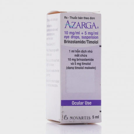 Thuốc nhỏ mắt Azarga sản xuất bởi Alcon chứa hoạt chất chính là Brinzolamide và timolol, được sử dụng làm giảm nhãn áp ở đối tượng bị bệnh tăng nhãn áp hoặc bị glocom góc mở. Thuốc nhỏ mắt Azarga được bào chế dưới dạng hỗn dịch vô khuẩn, đồng nhất màu trắng đến trắng ngà.