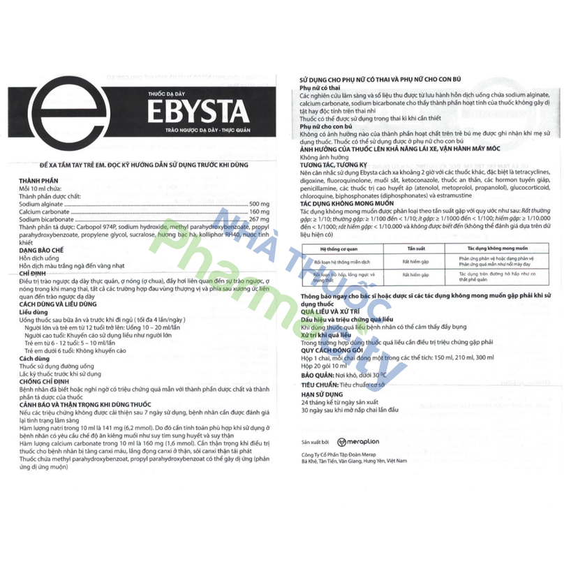 Hỗn dịch uống Ebysta trị trào ngược dạ dày thực quản (20 gói x 10ml)Hỗn dịch uống Ebysta trị trào ngược dạ dày thực quản (20 gói x 10ml)
