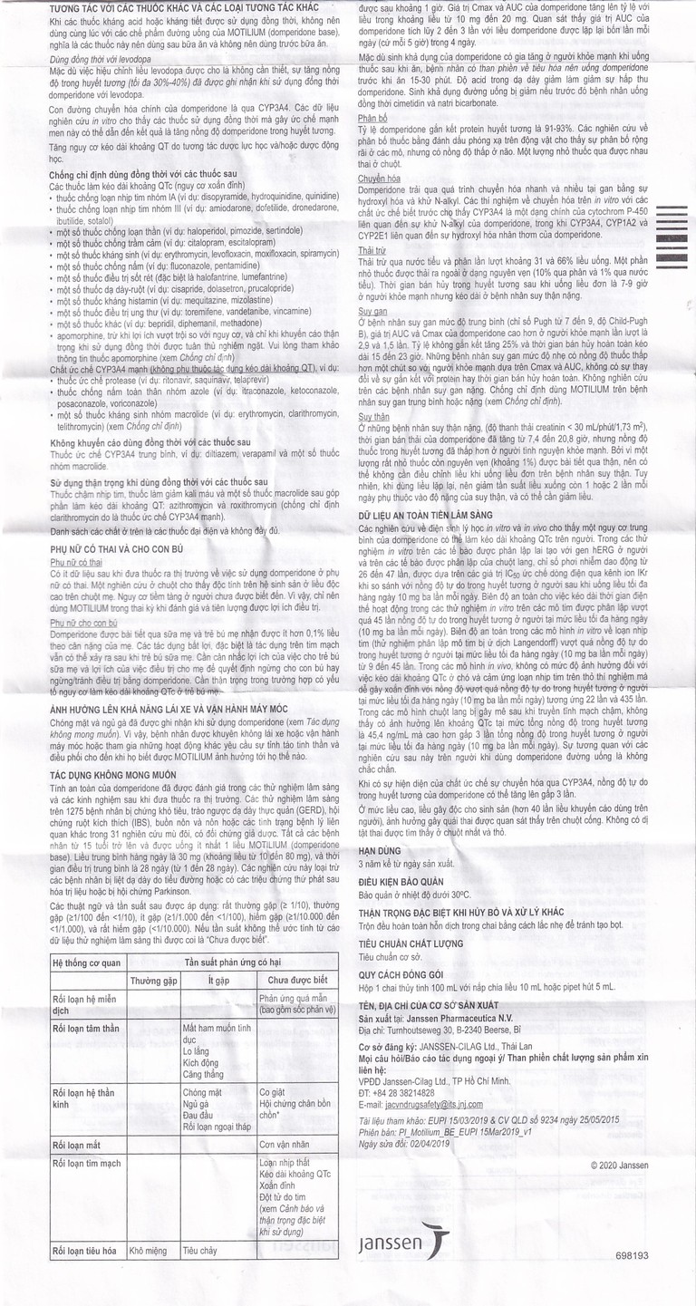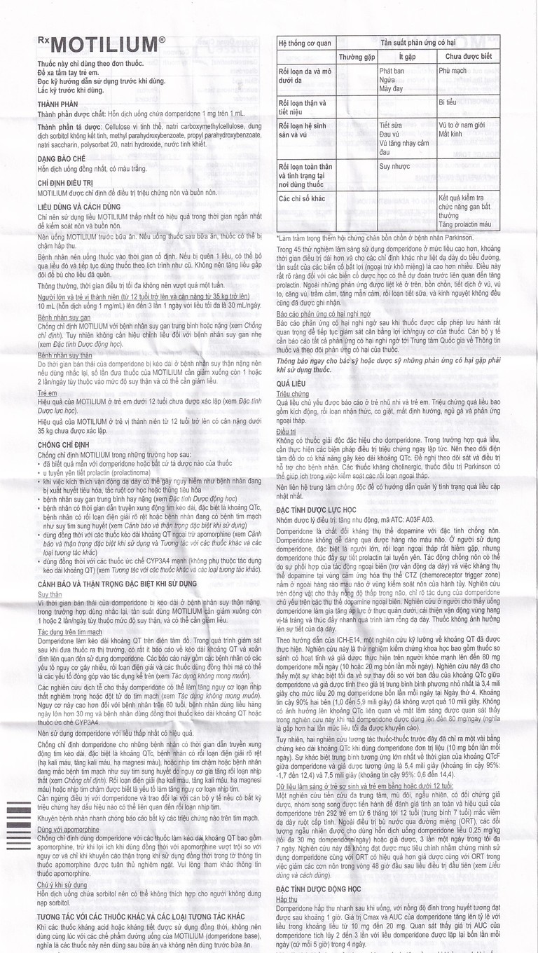 Chỉ nên sử dụng liều Motilium thấp nhất có hiệu quả trong thời gian ngắn nhất đề kiểm soát nôn và buồn nôn.