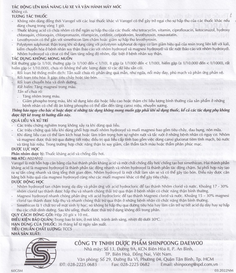Hỗn dịch uống Varogel Shinpoong Deawoo điều trị viêm loét dạ dày, tá tràng (20 gói x 10ml)