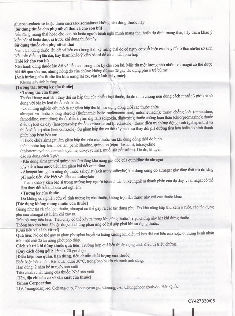 Thời kỳ cho con bú: Nên tránh dùng thuốc lâu dài và liều cao trong thời kỳ cho con bú. Mặc dù một lượng nhỏ nhôm và magiê có thể được bài tiết qua sữa mẹ, nhưng nồng độ của chúng không đủ cao để gây tác dụng phụ ở trẻ bú mẹ.