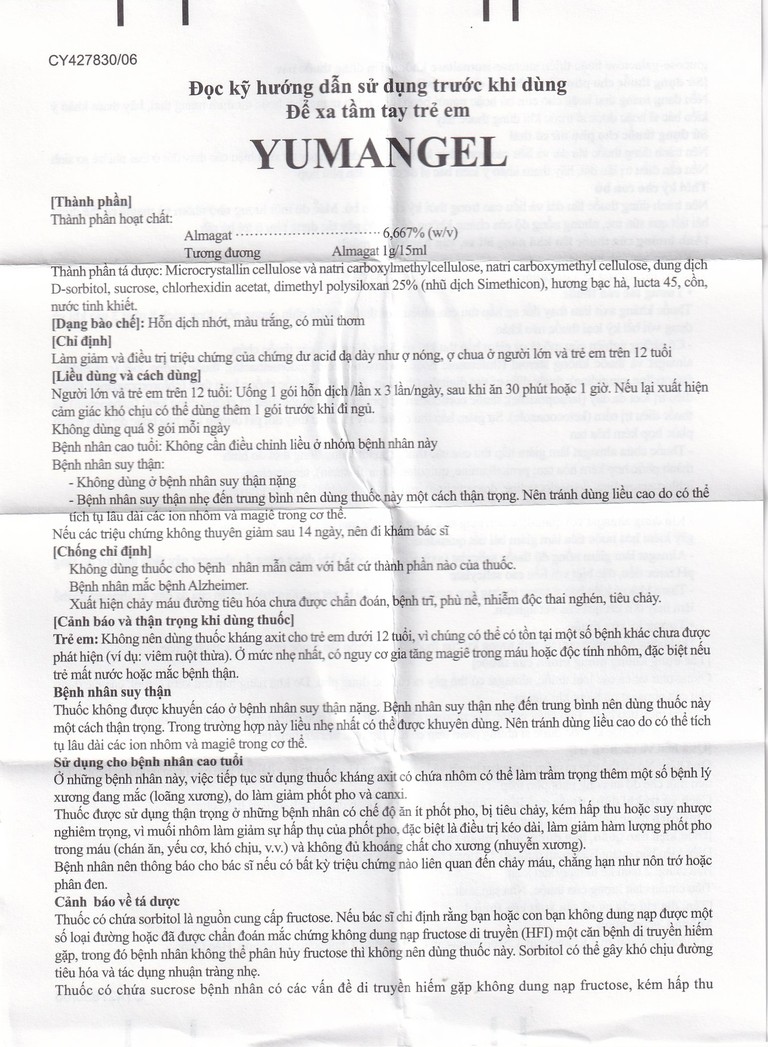 • Yumangel giúp làm giảm và điều trị triệu chứng của chứng acid dạ dày như ợ nóng, ợ chua ở người lớn và trẻ em trên 12 tuổi.