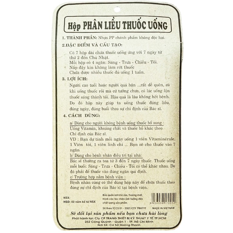 Với các ngăn nhỏ chứa thuốc cho mỗi ngày (sáng – trưa – chiều – tối).