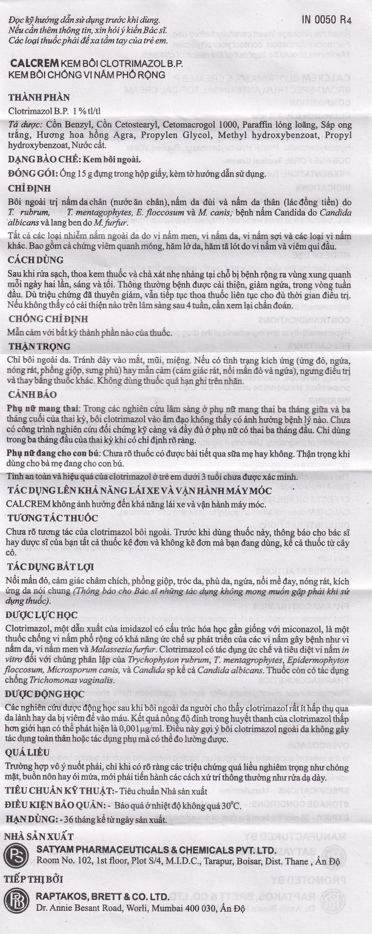 Kem bôi Calcrem chống vi nấm phổ rộng (15g)