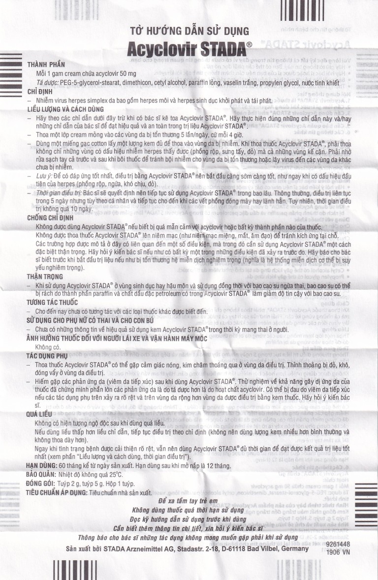 Trước khi sử dụng thuốc Acyclovir Stada bạn cần đọc kỹ hướng dẫn sử dụng và tham khảo thông tin bên dưới.