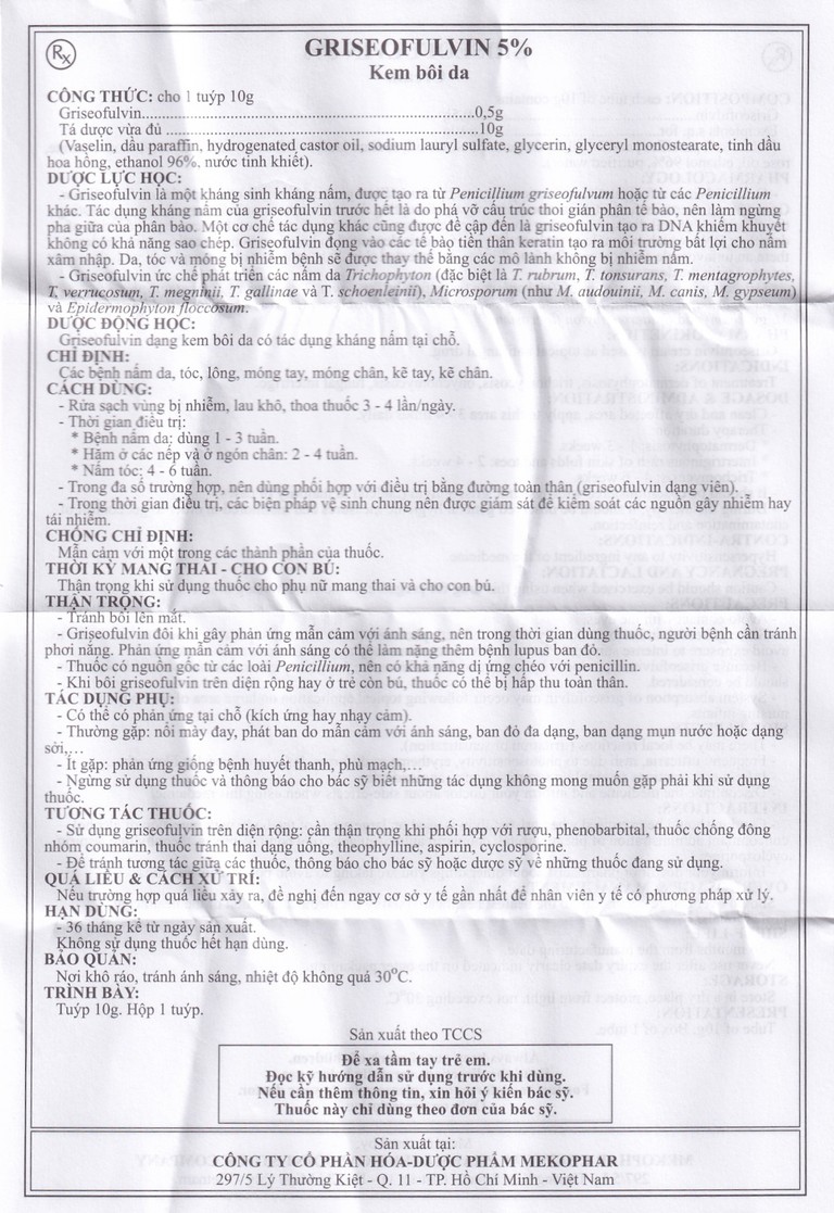 Kem bôi da Griseofulvin 5% Mekophar điều trị các bệnh nấm da, tóc, lông, móng tay, móng chân (10g)