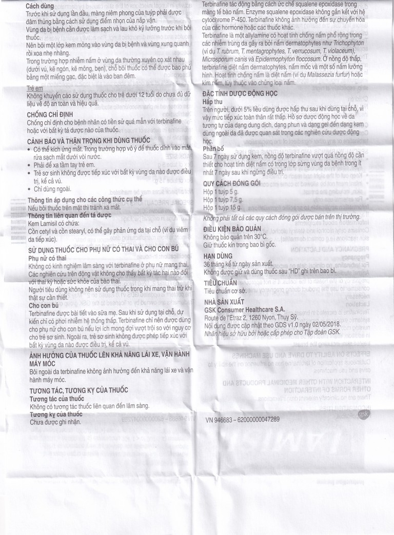 Sau 7 ngày sử dụng kem Lamisil, nồng độ terbinafine vượt quá nồng độ cần thiết cho hoạt tính diệt nấm có trong lớp sừng vùng da bệnh trong ít nhất 7 ngày sau khi ngừng điều trị.