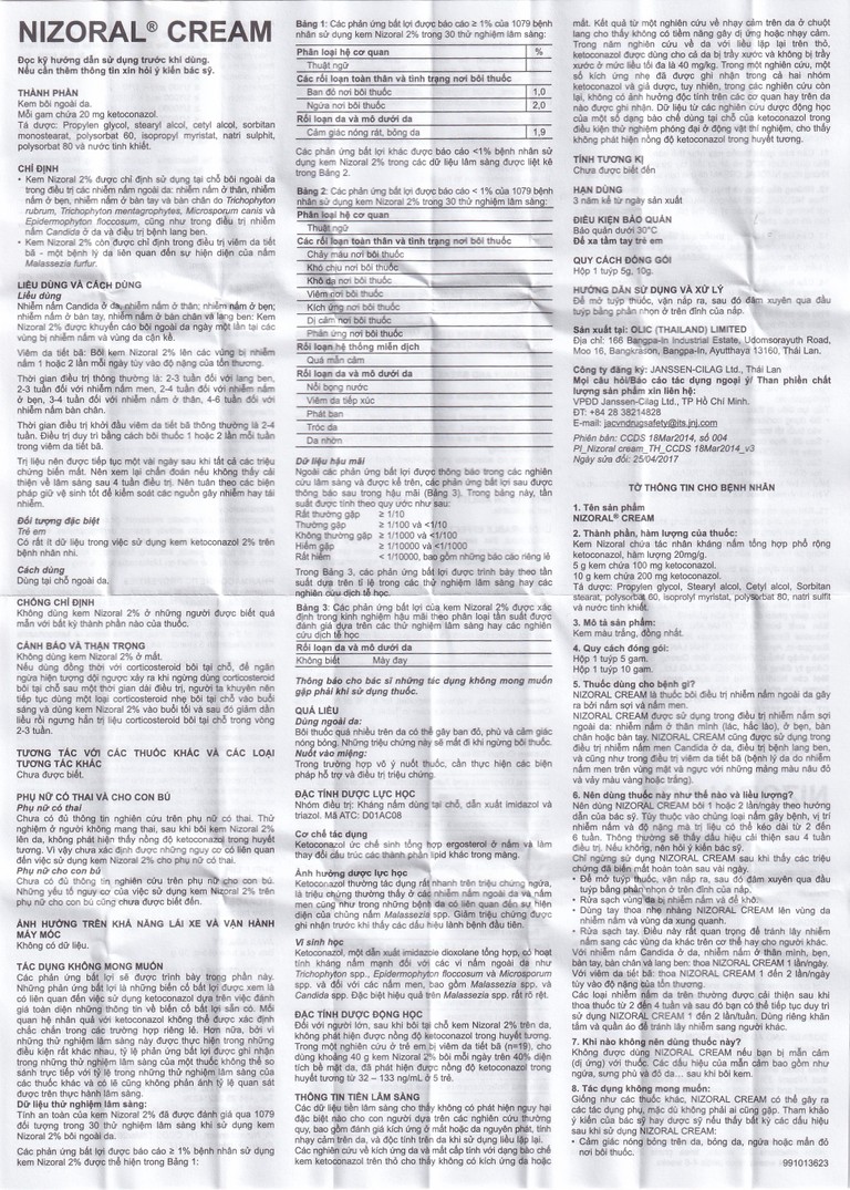Kem bôi da Nizoral Cream Janssen điều trị nấm ngoài da, lang ben (10g)