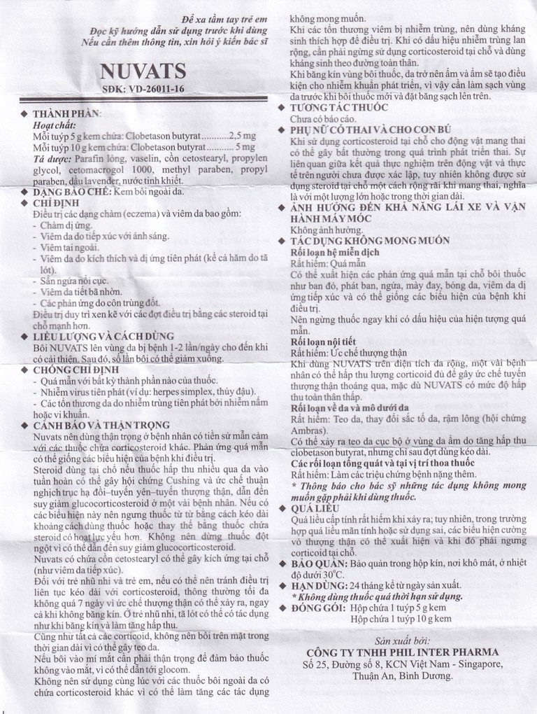 Kem bôi da Nuvats Phil Inter Pharma điều trị chàm dị ứng, viêm da, viêm tai ngoài (5g)SẢN PHẨM