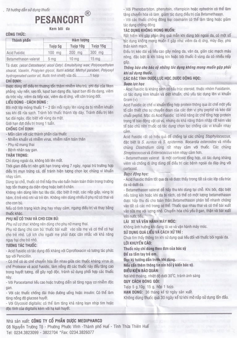 Thuốc Pesancort® dùng bôi ngoài da.