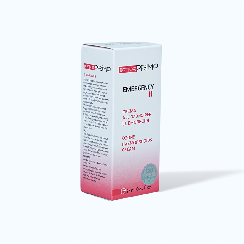 DOTTORPRIMO Emergency H là sản phẩm giúp giảm các triệu chứng khó chịu do trĩ gây ra, như đau, nóng, rát, ngứa và nứt hậu môn. Sản phẩm chứa các hoạt chất và chiết xuất từ tự nhiên, tác động tích cực lên thành tĩnh mạch, giúp co mạch, tăng tuần hoàn máu và làm dịu da.