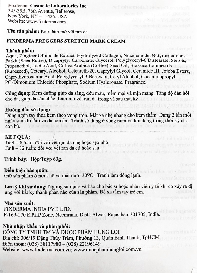 Thành phần của Kem bôi Fixderma Pregger’s Stretch Mark Cream