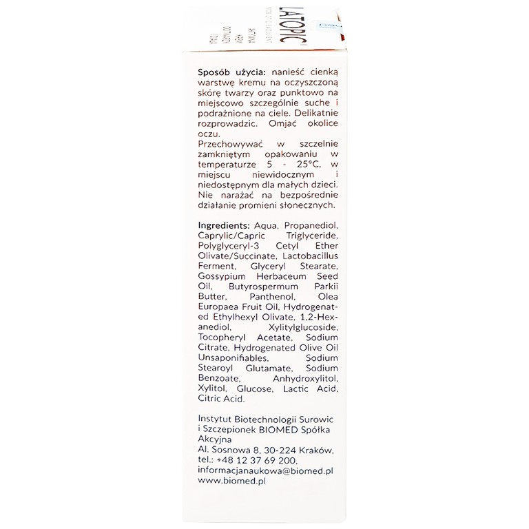 Thành phần của Kem bôi Latopic Probiotic Emollient Active Face and Body Cream