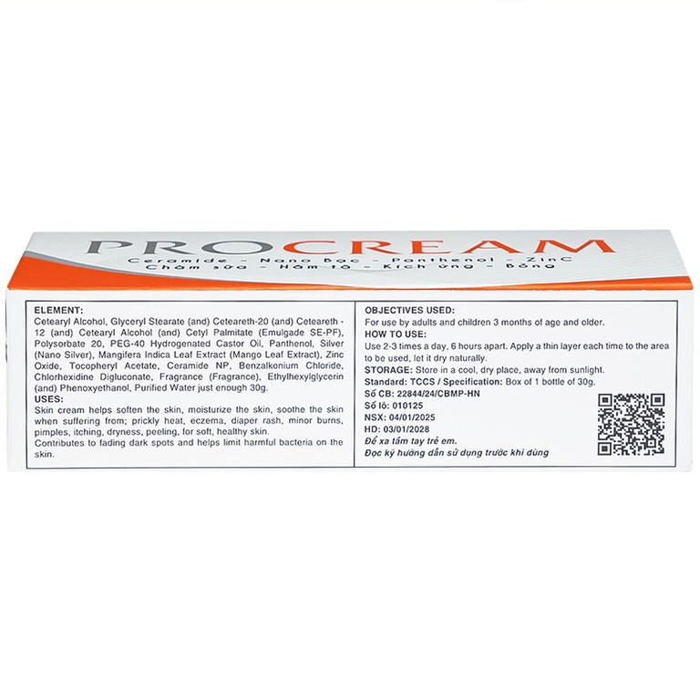 Procream là kem bôi da giúp làm mềm da, làm ẩm da, giúp dịu da khi bị: