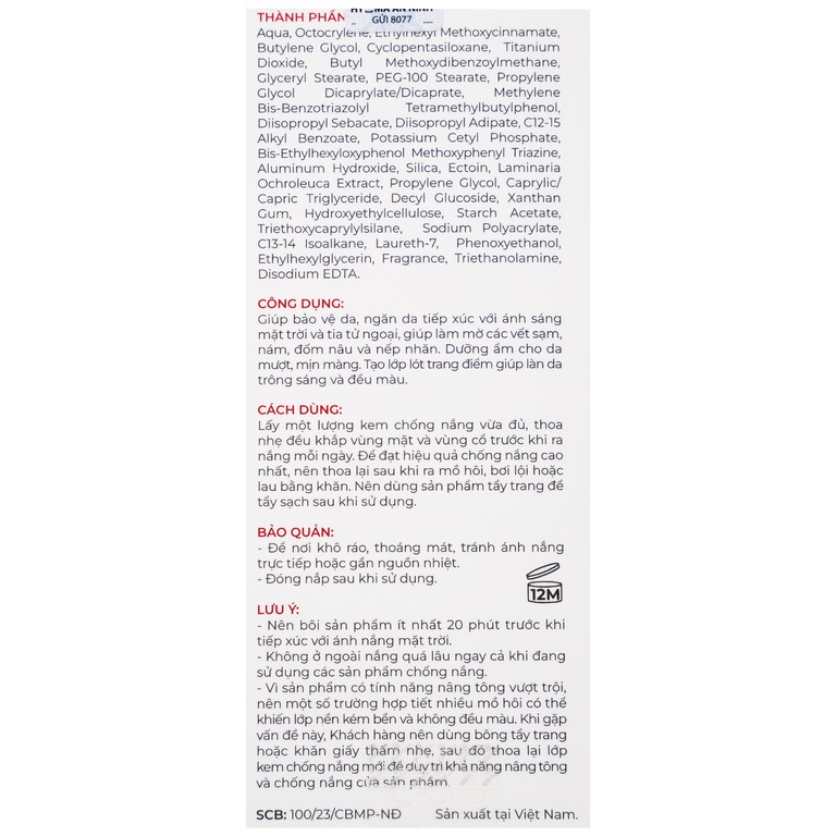 Vì sản phẩm có tính năng nâng tông vượt trội, nên một số trường hợp tiết nhiều mồ hôi có thể khiến lớp nền kém bền và không đều màu. Khi gặp vấn đề này, khách hàng nên dùng bông tẩy trang hoặc khăn giấy thấm nhẹ, sau đó thoa lại lớp kem chống nắng mới để duy trì khả năng nâng tông và chống nắng của sản phẩm.