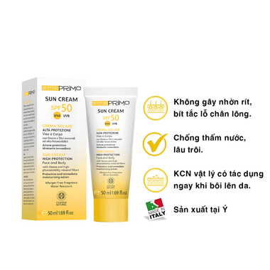 DottorPrimo Sun Cream SPF50 là kem chống nắng cho da mặt và toàn thân, giúp dưỡng ẩm cho da, bảo vệ da trước tác hại của tia UVA, UVB và ánh nắng mặt trời, giúp làm mềm da.