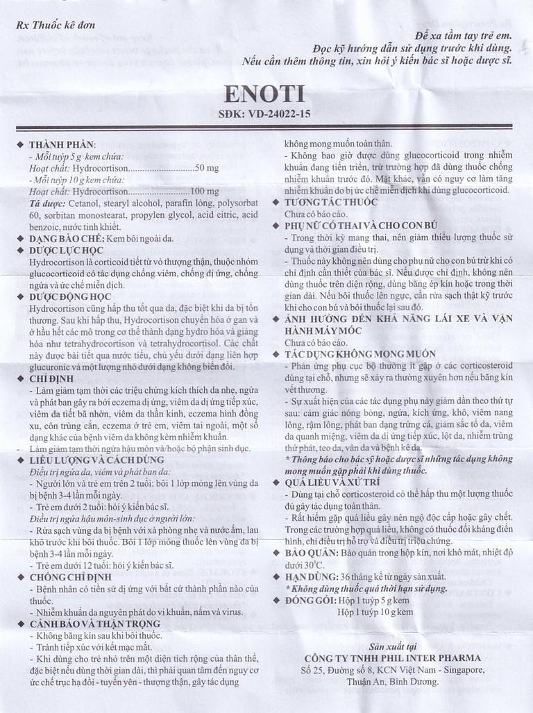 Thành phần của Kem Enoti Phil